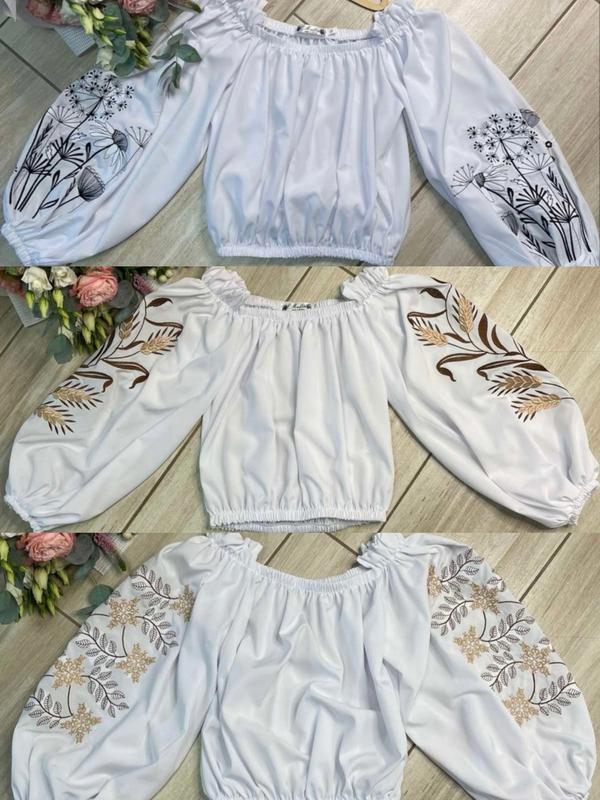 Красивая и изящная блуза Нежная вышивка, легкая ткань По низу и в рукавах под резинку КАЧЕСТВО ЧУДОВА!! РЕКОМЕНДУЮ!!! Шоес 140-146-1шт 146-152-1шт 152-158-1шт 158-164-1шт 164-170-1шт длина/пог/рукав 140-146/31/42/41 146-152/32/45/45 152-158/35/46/47 158-164/36/46/50 164-170/39/48/52