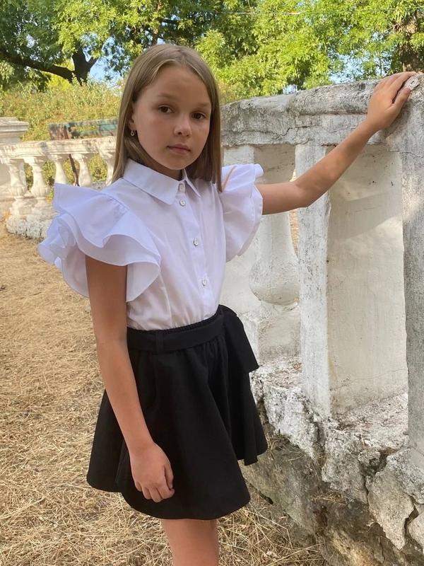 Блузка Крылья 💕 ✅ Цена : 780 грн Цвет: белый Тканина: бавовна Застежка: пуговицы Рукава: двухслойные воланы Ростовка 122-152 Все размеры в наличии Замеры: Плечи / Обхват по подмышкам / ОТ / длина по спинке Рост 146: 30 см/ 80/ 69/ 48 Рост 152: 31 см/ 82/ 70/ 50 Шорты- солнце ✅ Цена : 755 грн Ткань: тиар( не скатывается, приятная к телу) Цвет: черный Боковые карманы Пояс в комплекте Размеры: 122; 128; 140; 146 🔹Замеры: Пояс резинка / пояс резинка в натяжение / длина Рост 122: 48 см / до 63 см / 28 см Рост 128: 50 см/ до 65 см/ 29 см Рост 140: 53 см/ до 70 см/ 31 см Рост 146: 56 см/ до 72 см/ 32 см ▪️N-5T