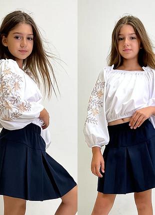 Через кнопку купити тільки повна оплата!!! Таня Арт 6704 Вишукана блуза з етнічним акцентом Ніжна справжня вишивка, повністю під резинку тканина супер софт ідеальна посадка — саме те, що потрібно для стильного образу дівчинки! Рекомендую зріст/довжина по переду/пог/рукав похибка +-2см 140-146/32/33/45-1шт 146-152/36/34/47-1шт 152-158/37/35/50-1шт 164-170/40/39/56-1шт