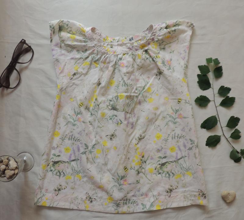 Легкая блуза цветы растения на белом фоне hm под мышки 40 до 44 состояние идеал, на спине пуговица