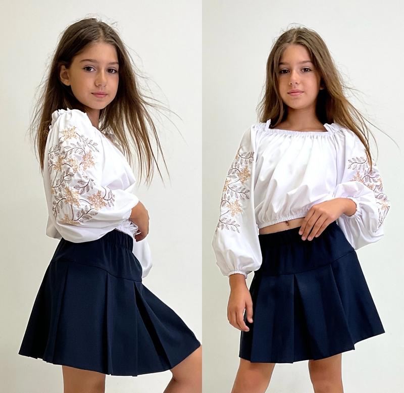 через кнопку купить только полная оплата!!! Арт 6704 Изысканная блуза с этническим акцентом Нежная настоящая вышивка, полностью под резинку тканина супер софт идеальная посадка — именно то, что нужно для стильного образа девочки! Рекомендую рост/длина по переду/пог/рукав похибка +-2см 140-146/32/33/45-1шт 146-152/36/34/47-1шт 152-158/37/35/50-1шт 164-170/40/39/56-1шт Тан