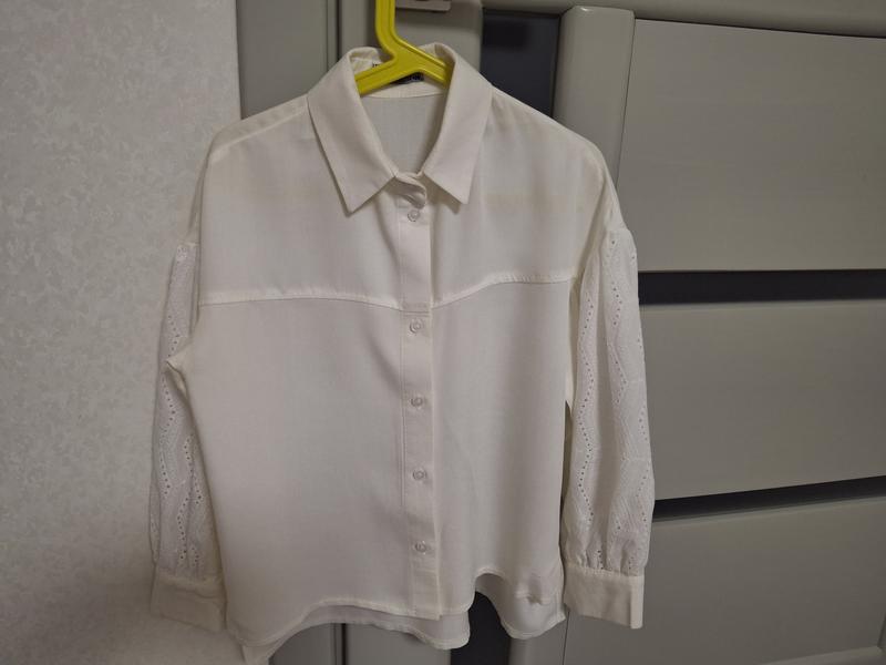 Продам праздничную блузку для девочки,цвет айвори,свободного покроя,на рукавах вставки прошвы.Размер 128см.Стан идеальный.Производитель BriliAnt.Инши детали в пп.