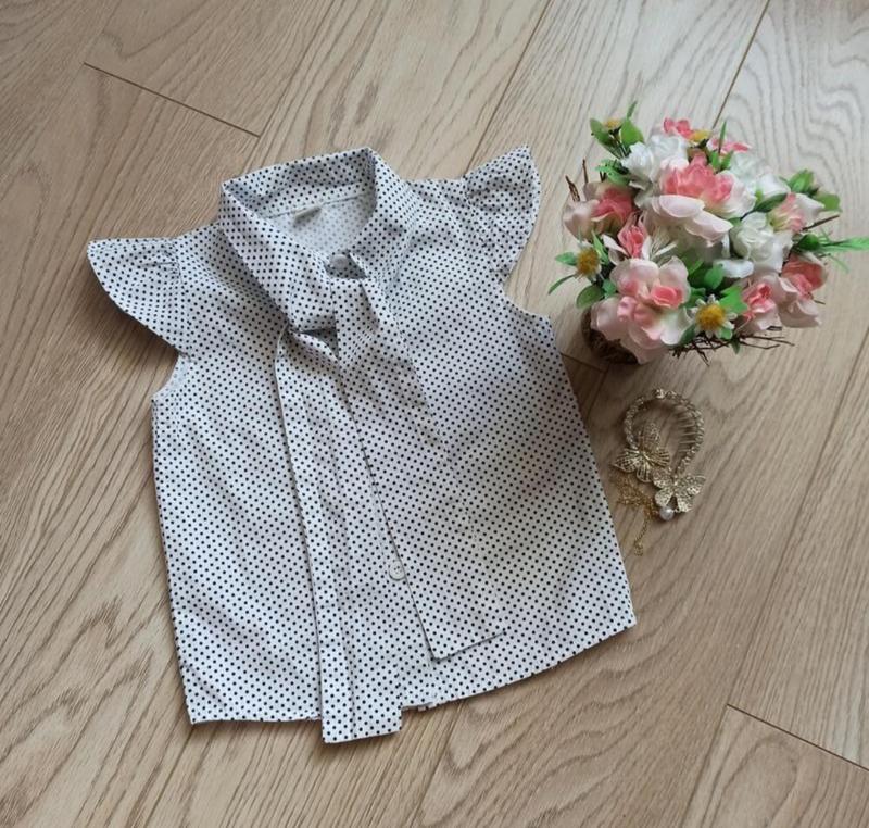 Блуза в состоянии новой, без каких-либо нюансов и признаков носки. Воротничок завязывается на бант. Бавовна. Размер по набору 110. Плечи 22 см ПОГ 31 см ширина низу 31 см длина от плеча 38 см.