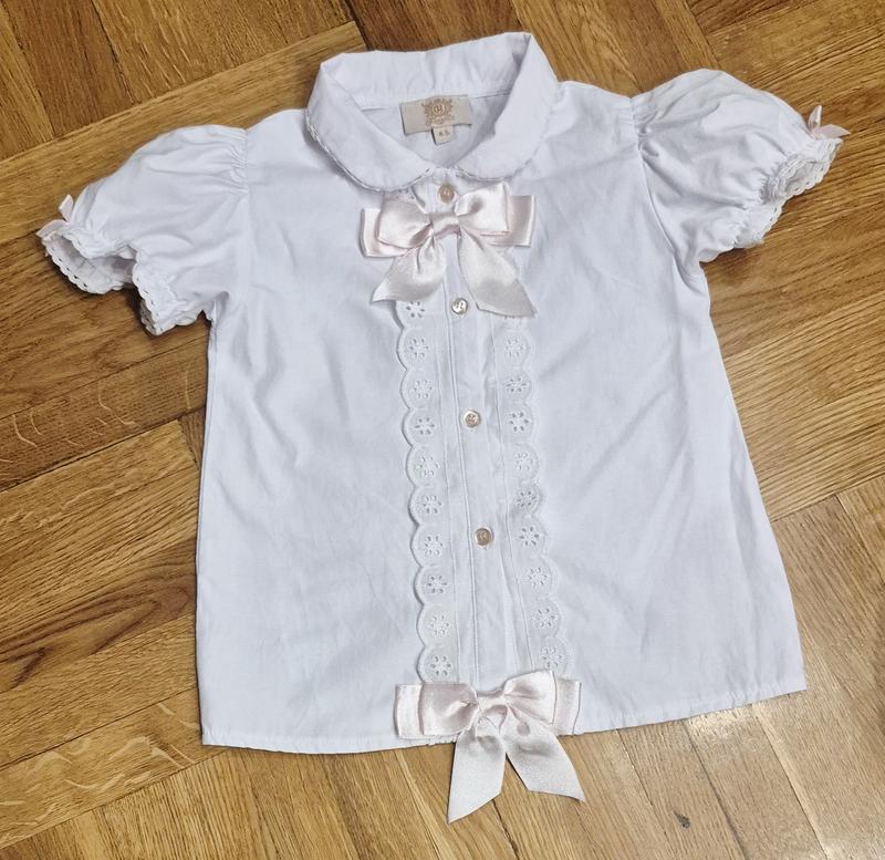 нарядная белая блузочка с бантиками для девочки состояние новой длина 39см ног 31см