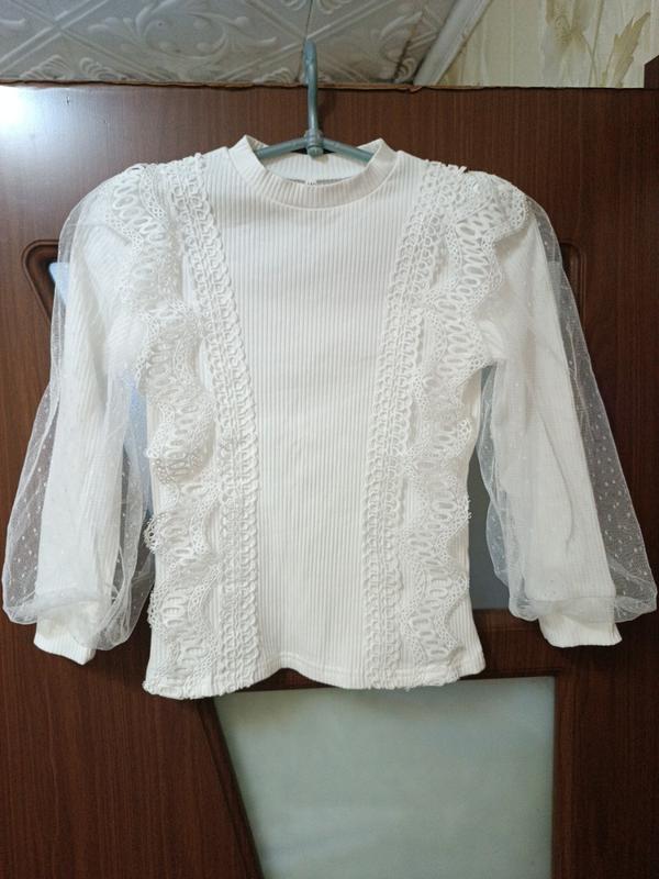 Очень красивая блузка с рукавами для девочки. Материал рубчик коттон стрейч. Брала своему ребенку на 9 лет, но он маленький на него. На наборе написано 140, но она где-то на 7-8 рочков. Длина по спинке 49 см. Длина рукава от плеча 44 см. Ширина 31 см. Новая, не ношена.