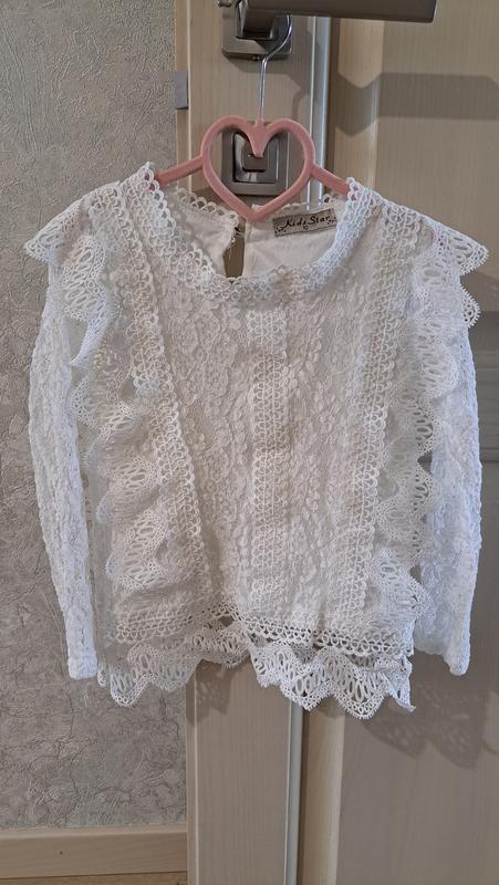 Блузочка на рост 122-134 см. в идеальном состоянии. Не осветляется, потому что изнутри есть подкладка. Рукава-кружевные.