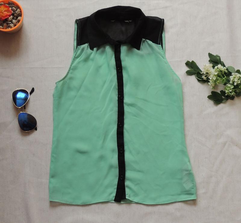Салатово чорна блузка бренд New Look 13 лет ширина по низу 42 см прозора шифонова, варто носити под низ, с топиком мин заказа от 80 грн 📣📣📣