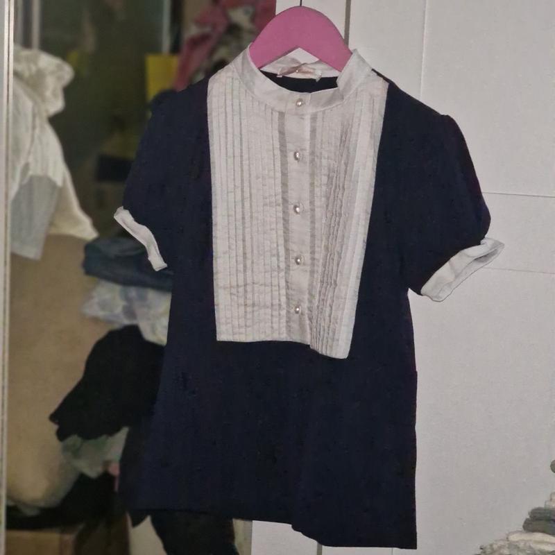 Нова блузка для дівчинки. Колір: синій із білим. Розмір: 146. Дуже гарна і приємна до тіла дитини.
