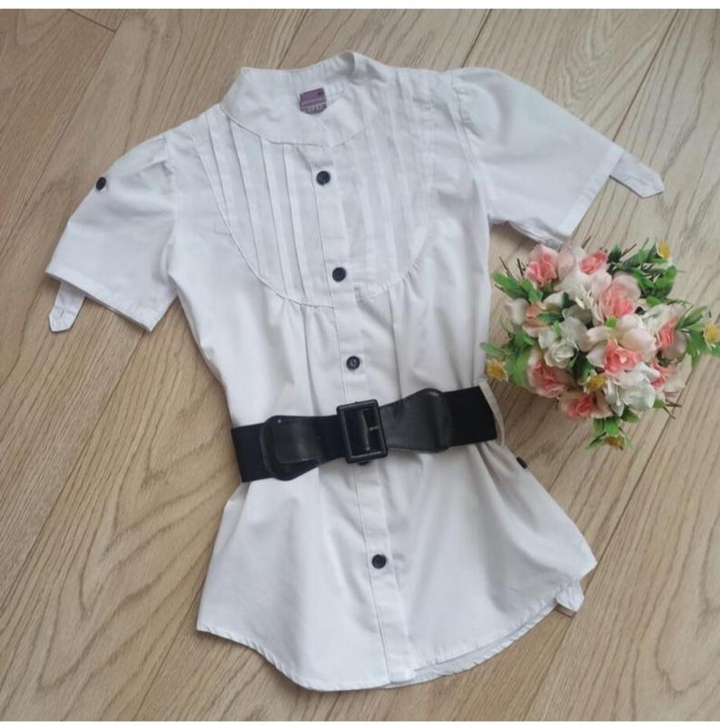 Блуза новая, без каких-либо нюансов. Хлопок 65, полиэстер 32, эластан 3. По бірці р.30. Пояс идет в комплекте. Плечи 28 см ПОГ 35 см длина от плеча 52/57 см.