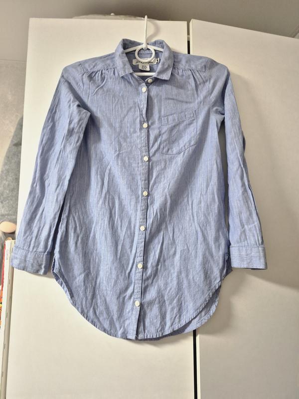 Рубашка Рубашка H$M 9-10 лет в отличном состоянии.98%коттон, 1% полиамид, 1% металик. Длина 65см, ширина полу обьем 42 см, длина рукава от плеча 65 см. Красивая голубая с люпексовой полосочкой.