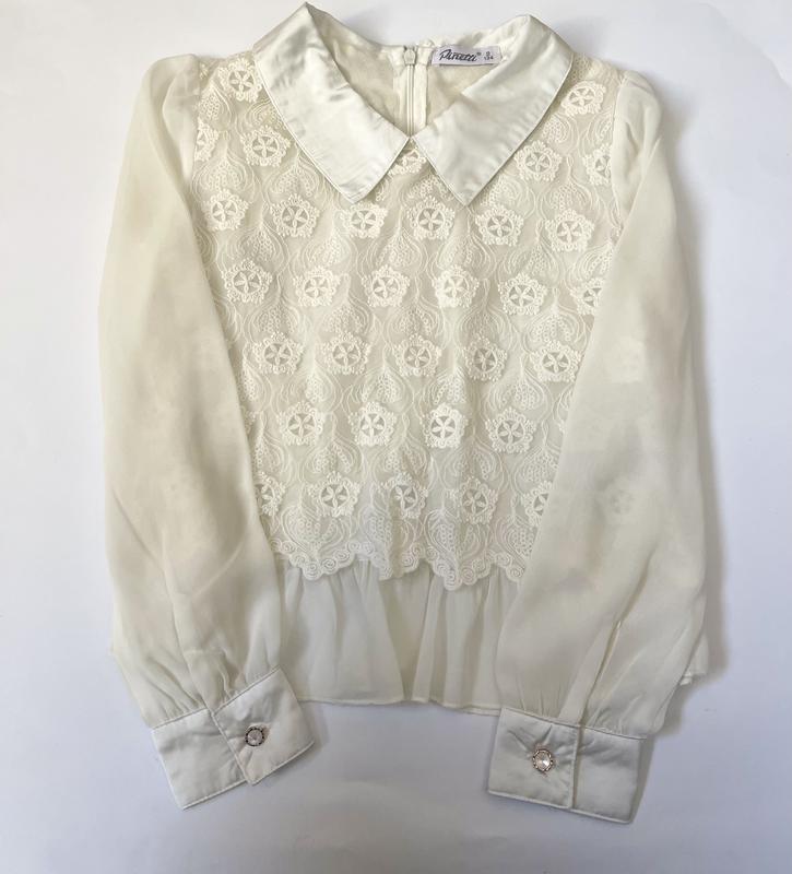 Розкішна дитяча сорочка/блузка Невеликий дефект видно на 3-му фото Прозорий рукавчик, довжина - 50 см Півобхват грудей - 35 см Довжина блузи - 44,5 см