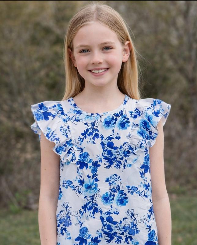 блузка для девочки белая в голубые цветы. праздничная.