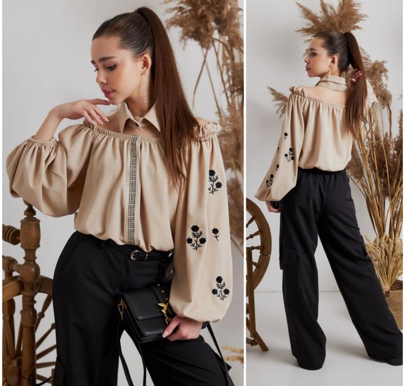 через кнопку купить только полная оплата!; Роскошная блуза для девочек Имеет съёмный чокер-воротник. На рукавах и планке вышивка. Снизу собрана под резиночку. Ткань-шелк-диагональ. Замеры: 140 длина от плеча - 41см, полуобхват груди - 36см, рукав от плеча- 47см. Мс