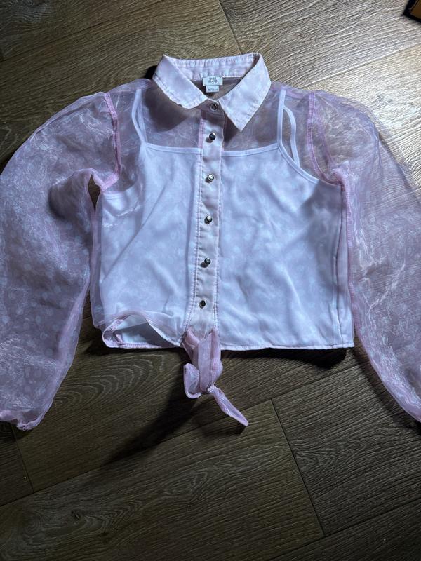 Святкова блуза, прозорий рукав, всередині пришита майка. Довжина 39 см, ширина 37 см, рукав 49 см