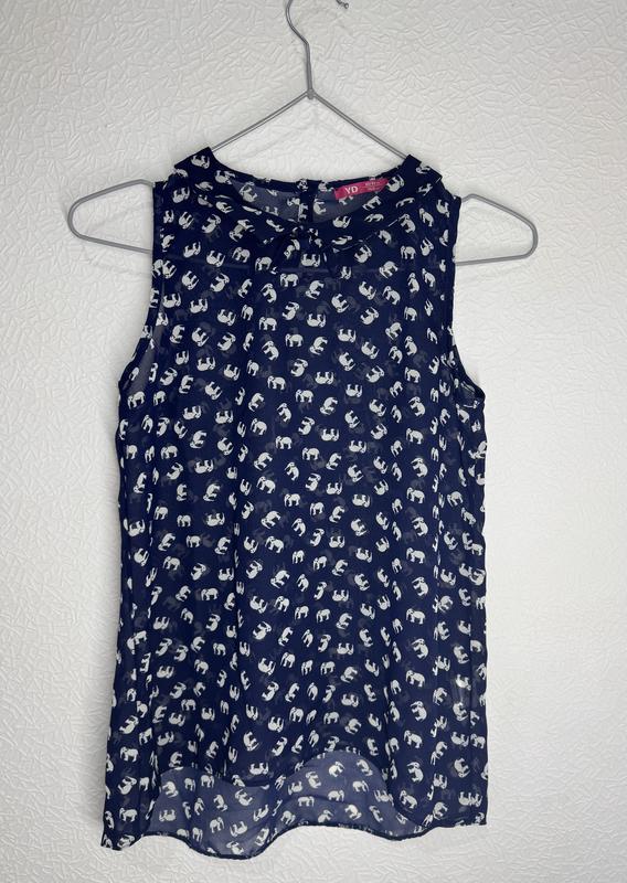 Блуза для дівчаток від бренду YD в синьому кольорі зі слониками. Вік 10-12 років, 146 см. Стан ідеальний.