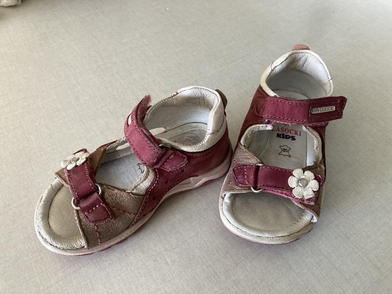 Кожаные босоножки Lasocki в идеальном состоянии. Размер 22 (14,5см), но можно и на меньшую ножку, примерно на стопу 13,5 см - пятка чуть скошена как и у многих сандаликах. Все целое. Состояние отличное, носили где-то полмесяца-месяц. Кожа и внутри, и снаружи Покупала за 900 грн. Есть Коробка.