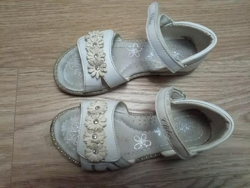 белые босоножки с цветами на девочку, кожаная стелька, 31 размер