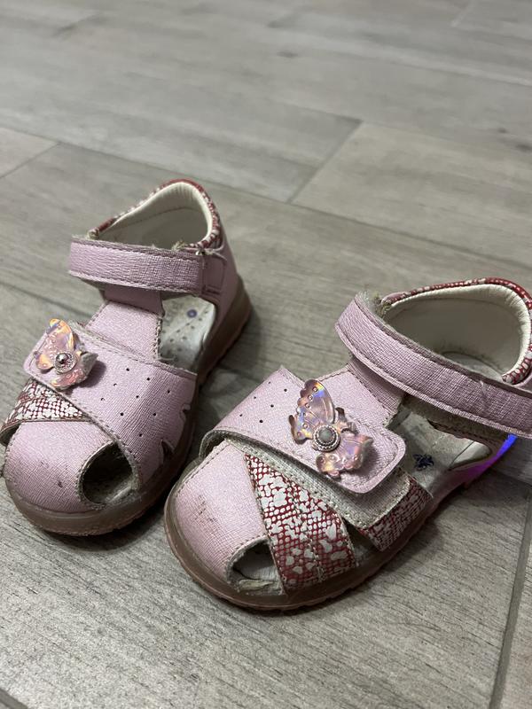 23 р, состояние хорошее, есть чуточку потертости. Подошва светится, на липучках.