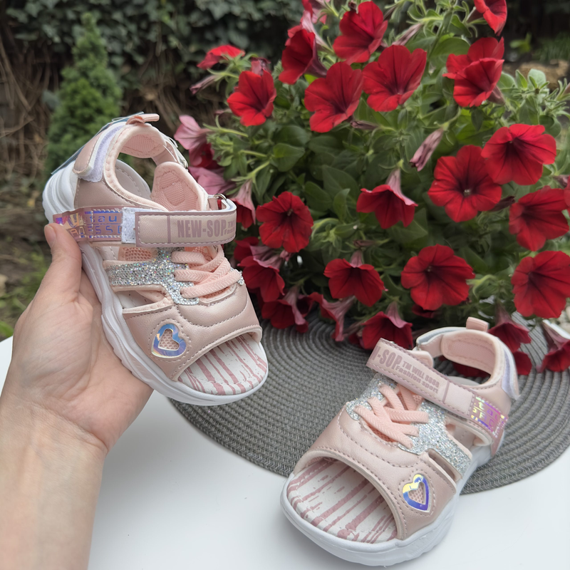Спортивные, однако, нежные и нарядные босоножки. Стелька- кожа, супинатор! Подошва- пена! Застежки- две липучки. Качество- отличное! Замеры: 27 – 17,2см 28 – 18,0см 29 – 18,7см 30 – 19,2см 31 – 20,1см 32 – 21,0см Замеры стельки от края до края!