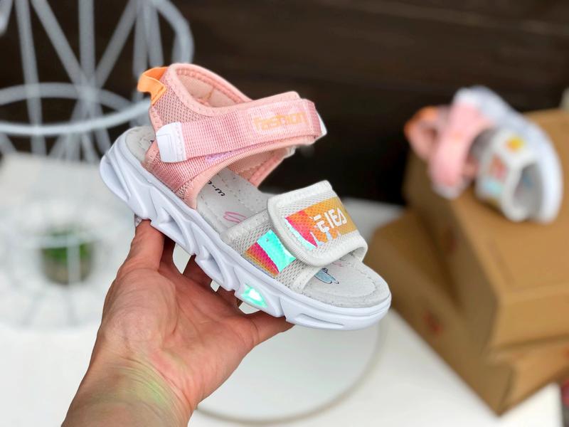 Без кнопки заказать!!!️‼️‼️ Легкие босоножки для девочек Верх емко кожа и текстиль две липучки Стелька кожаная с супинатором Подошва с подсветкой ЗАМЕРЫ К КРАЮ УСТЕЛКИ и К ШВА 29 размер 18.8 см (18 см) (2 шт