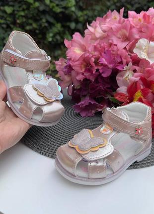 Якісні та стильні босоніжки у ніжному рожевому кольорі! Ортопеди. Устілка- шкіра, супінатор! Підошва- резина! Верх- екошкіра. Застібки -2 липучки! Заміри: 23 – 12,5см 24 – 13,5см 25 – 14,0см 26 – 15,0см 27 – 15,5см 28 – 16,0см Ціна: 450 грн Заміри устілки від краю до краю!