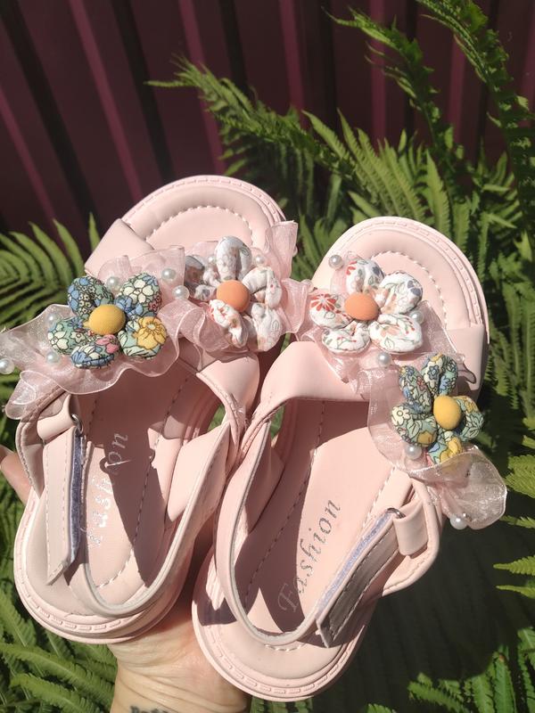 Красиві босоніжки з об'ємним квітами з текстилю. Дуже м'якенькі та зручні. Внутрішня довжина устілки - 18,9 см.