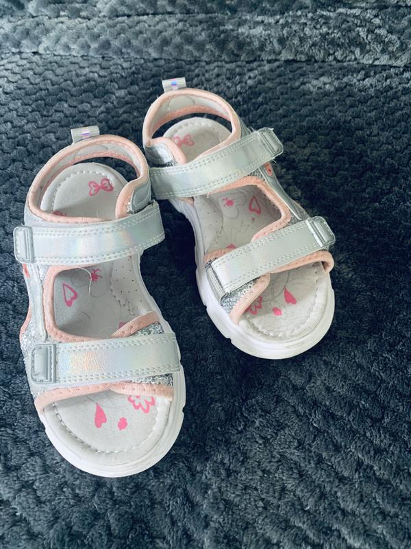 Красивые, легкие голографические босоножки на липучках. Очень удобные. Блистять на сонечку. На любимую полноту ножки за счет липучек. Размер 30 Одягали раз 5