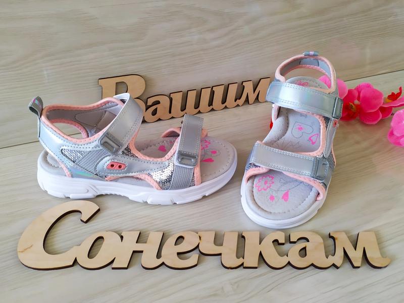 босоножки для девочки верх кожзам с сочетанием пайеток и голограми стелька кожаная есть супинатор есть две липучки замеры от края до края по стельке 36р-23.5см-1шт код 574