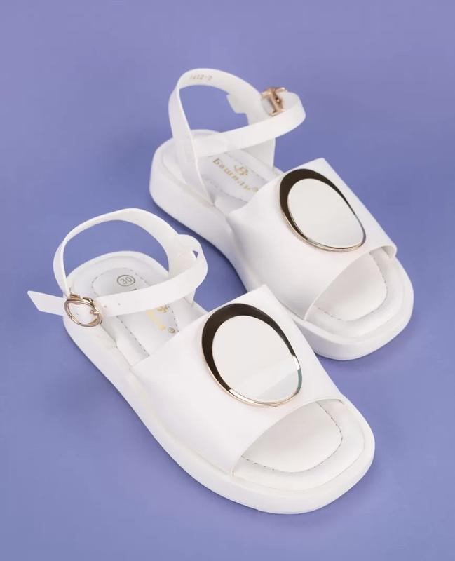 Босоножки для девочек Бренд: Башили Страна производитель - Китай Цвет - белый Материал верха - эко кожа Стелька - эко кожа, супинатор Підошва - ПВХ, не гнется, легкие Застежка - крючок Высота подошвы - 2,5 см Размерный ряд: 30-37 размер Замеры: 30 размер 19,5 см 31 размер 20,5 см 32 размер 21 см 33 размер 21,5 см 34 размер 22 см 35 размер 22,5 см 36 размер 23,5 см 37 размер 24 см Замеры до полной потолков +1 см