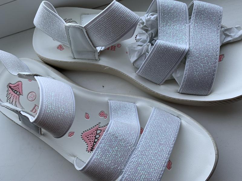 Очень красивые и нежные босоножки для девочки на резинках, легкие и удобные.