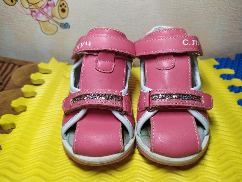 24 размер (16см стелька от края до края) Ортопедические босоножки в нежном коралловом цвете. Стелька- кожа, супинатор! Подошва- резина! Верх- экокожа, украшенные глиттером. Застежки- две липучки!