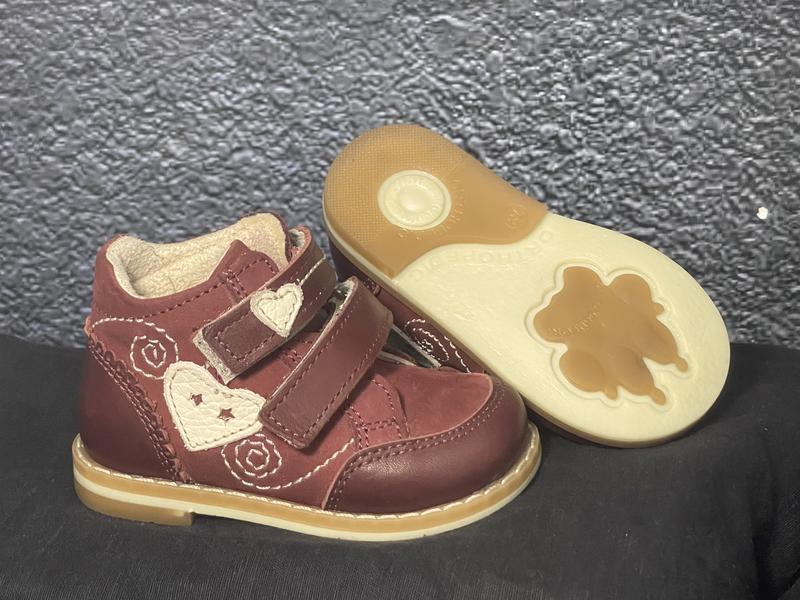 Правильная обувь для первых шагов. Натуральные, гипоаллергенные материалы! Демисезонные ботинки для девочек 18 размера, выполнены из натуральной кожи и нубука красивого бордового цвета. Стелька - натуральная кожа. Подкладка - мягкий флис. С помощью анатомического супинатора и каблука Томаса ножка ребенка будет расти и развиваться правильно. Обувь легко одевается и фиксируется с помощью двух липучек. Декорированы бежевой строчкой, бежевыми кожаными сердечками и фиксирующей пяткой. Подошва изготовлена из термопластиковой резины, которая не скользит. Отличный вариант для весенних прогулок. Страна производитель: Турция (Theo Leo)