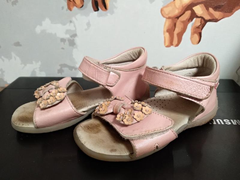 цвет розовый перламутр. материал натуральная кожа. длина стельки 16 см подойдет на любой объем ножки за счет липучек. липучки нормальны. следует немного отмыть. подарок к любой другой паре детской обуви
