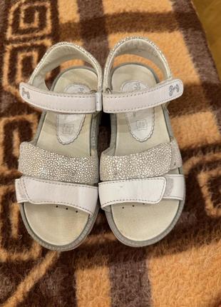 Шкіряні блискучі босоніжки, в гарному стані, після однієї дитини. Взували на свята, не на кожен день. Довжина устілки-18,5 см.(30 розмір).