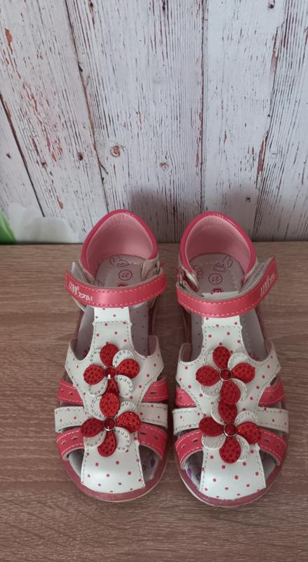 Детские босоножки. Состояние очень красивое. Одевали всего несколько раз. Материал кожум. Застегивается на липучку. Размер 27. Длина по стельке 17 см.