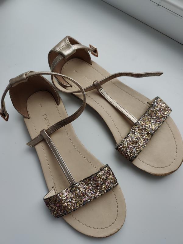 Сандалии в хорошем состоянии, next 1 размер, по стельке - 19 см до шва, полная стелька - 20 см. Небольшие потертости спереди.