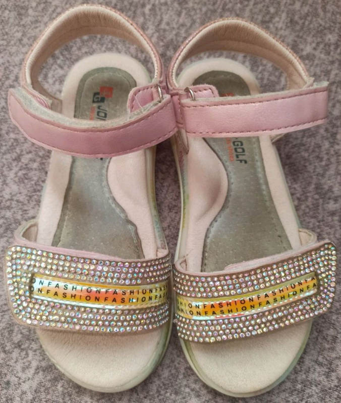 Виробник: Інший виробник Тип взуття: Босоніжки Торг Продам босоніжки з супінатор, застібка на липучці, для дівчинки ,у відмінному стані, дуже красиві , в темряві святяться .
