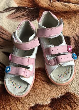 Босоножки на девочку,размер 26,твердый задник,ортопедическая кожаная стелька 15,5 см до шва и 16,2 до края.В хорошем состоянии.