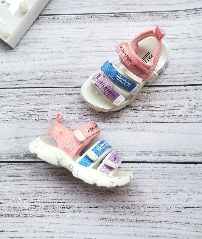 Крутые, яркие босоножки для девочек. Снаружи текстиль. Фиксация тремя липучками, подойдут на любой объем ножки. Легкие и гибкие. Очень стильные и удобные. Размеры - замеры стельки полностью: 35р-22,7см