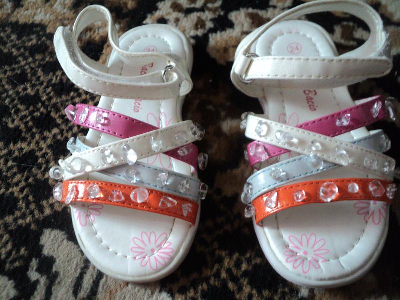 Босоніжки для дівчинки в ідеальному стан. Майже нові. Один раз взули. Виглядають на ніжці чудово. Добре одягати, на липучках. Довжина устілки - 13 див.