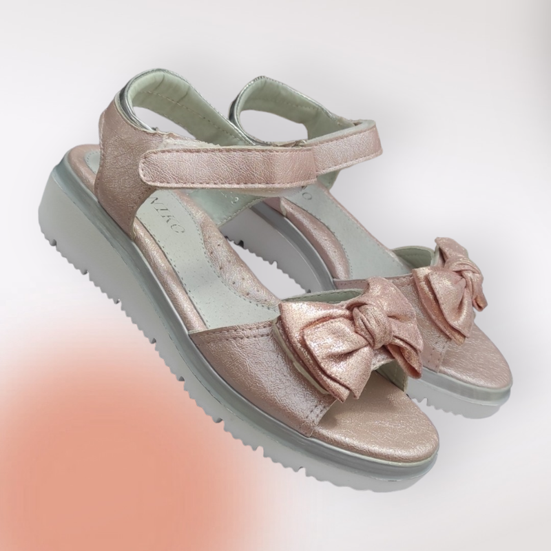 Босоножки сандалии для девочки на платформе танкетке, розовые пудра с бантиком для девочки