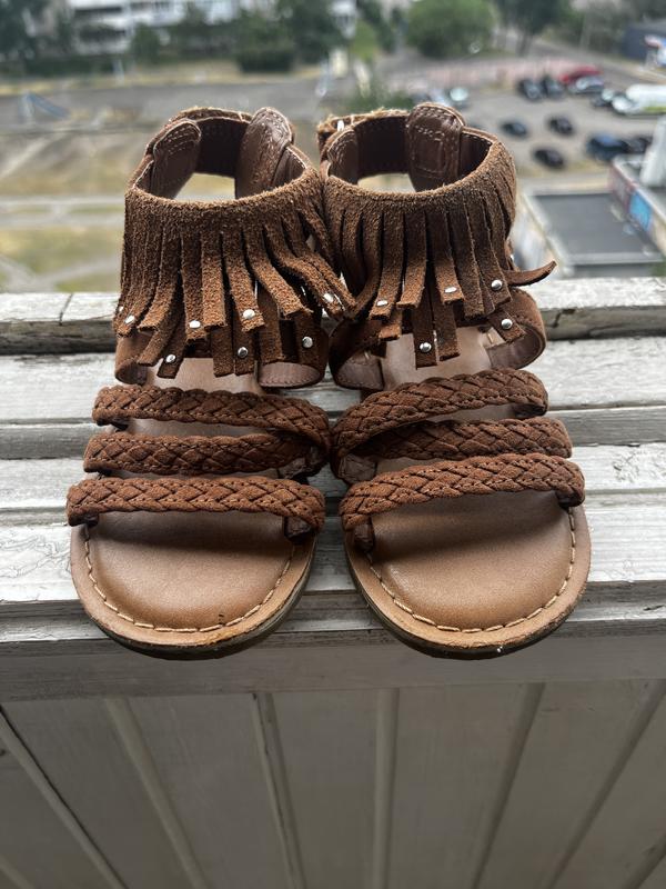 Хорошие босоножки от Next. Стан идеален, разве на одном есть небольшая царапина, на фото показала. Стелька от края до края 15 см.