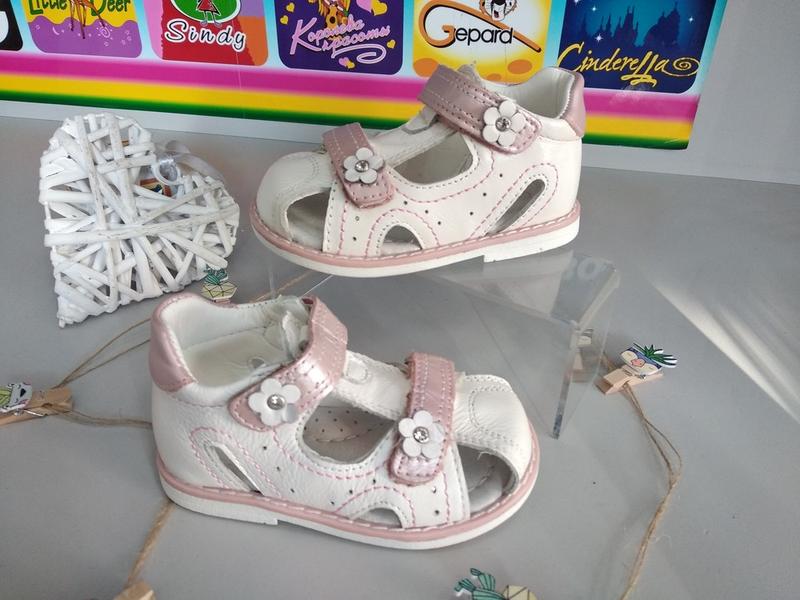 Босоніжки для дівчинки Натуральна шкіра Акуратні і ніжні Є каблук Томаса, супінатор, дві липучки, що дасть можливість міцно закріпити на ніжці з будь яким об'ємом розмір залишився лише один: 24-15.0см Є нюанс на взутті. Товар стояв на вітрині, має збоку трохи бруду. При ходьбі того видно не буде. Якщо маєте білу фарбу, він зафарбується. Фото відправлю в повідомленні, якщо буде цікаво. Буде знижка. Пропонуйте свою ціну