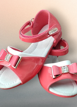 Босоніжки сандалії лакові для дівчинки жовтогарячі вузькі легкі нові уцінка