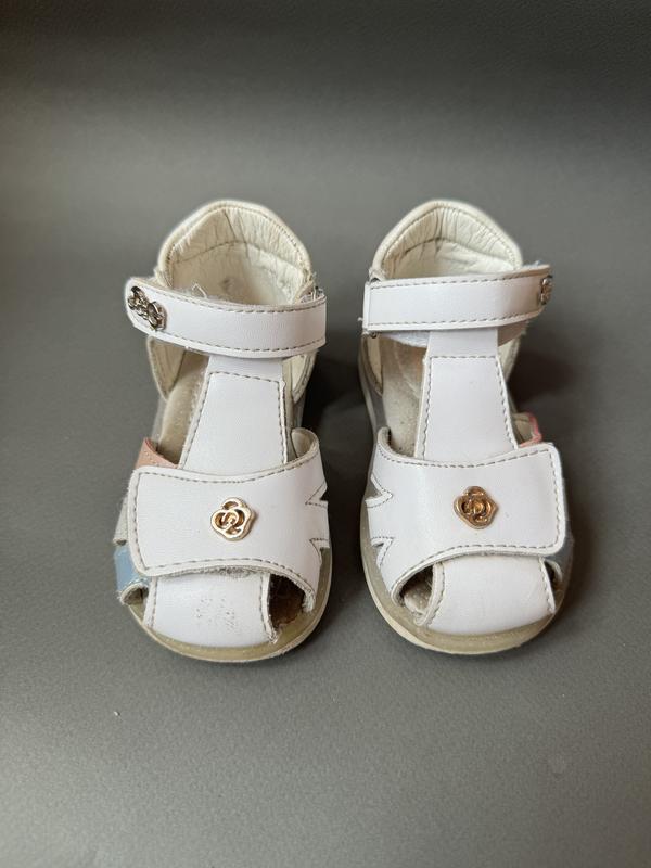 Босоножки носилися мало, нога быстро выросла. Есть немного потертости спереди на носках (видно на фото), твердый задник, хорошо фиксирует ножку