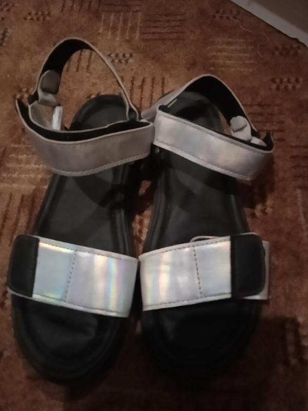 Босоножки, цвет хамелеон, переливается. застежка на липучке. также липучкой регулируется ширина по ножке (видно на фото).Длина стельки 22 см, размер 35.