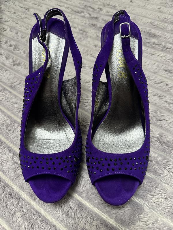 Замшевые босоножки с открытым носком и пяткой, внутри кожаная стелька, высота каблука 12см, высота платформы 2см, размер 39. Это итальянский бренд «М.М.8»