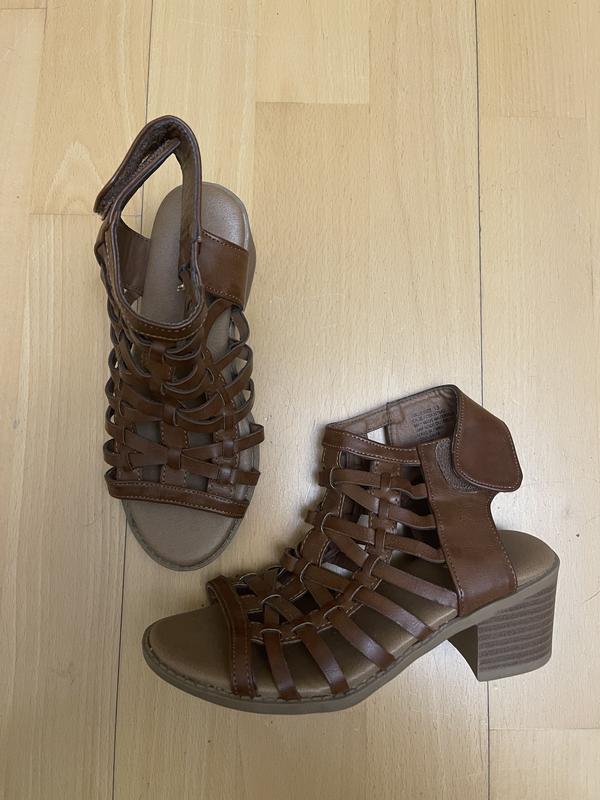 Детские босоножки коричневого цвета 30/31 размера. Бренд Girl Mia, Китай. Заменитель кожи. Стелька 20 см, ширина 6,5 см, каблук 5 см. Стан идеален.