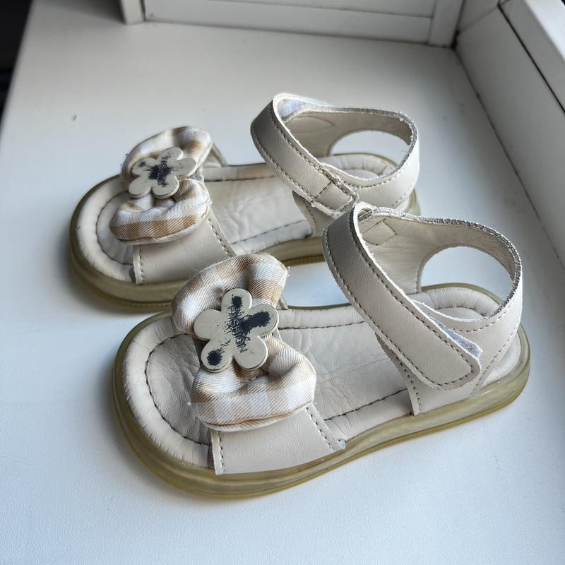 Размер указан 23, но маломерки, больше подходит на 21-22. Стелька по ниточкам 13см, от края до края 14,5см. Из недостатков потертости на цветочке и на задней части (на фото видно)