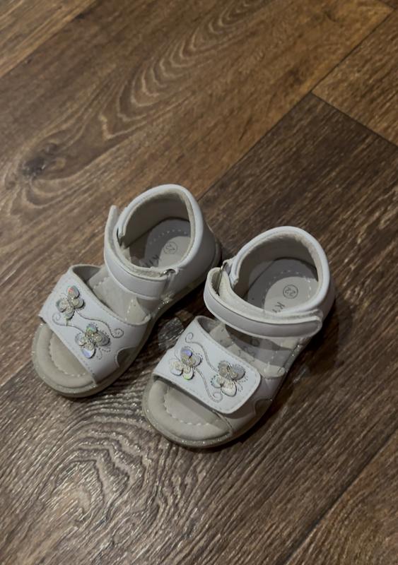 Босоніжки на літо для дівчинки білого кольору Взувалися пару разів Розмір 22(14 см)